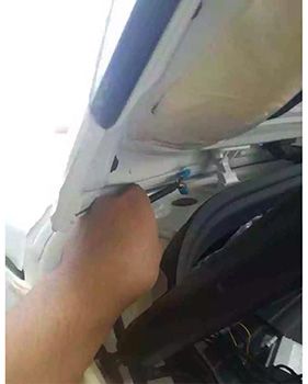 5. 拆下原车撑杆,更换我司电动撑杆。(撑杆线束进尾门有所区别,具体可查看说明书);