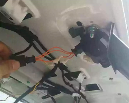4. 将电源线,前开关线从前至后走至后顶棚胶管处;