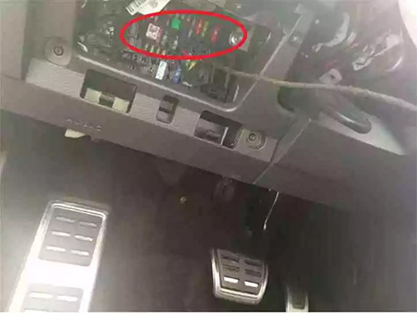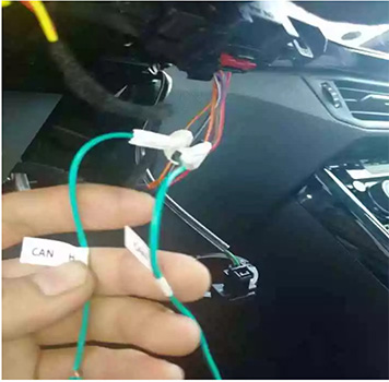 3. 安装尾门锁机三通转接线,连接尾门扣手开关负触发信号线(我司为紫色线);