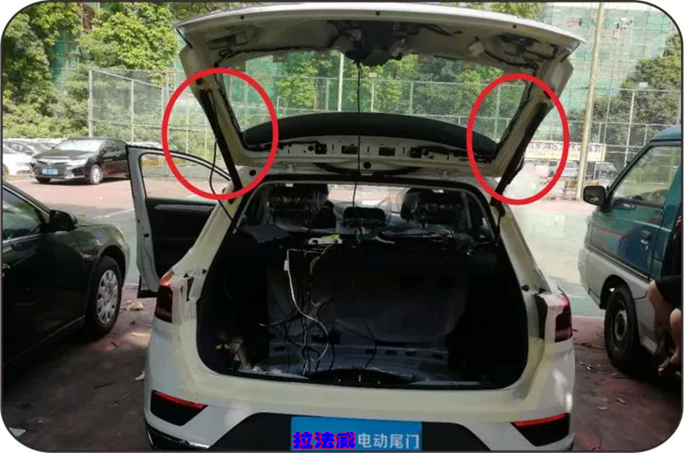 (个别车型撑杆线进入尾门需打孔,一定要在完全测试正常之后再进行开孔)