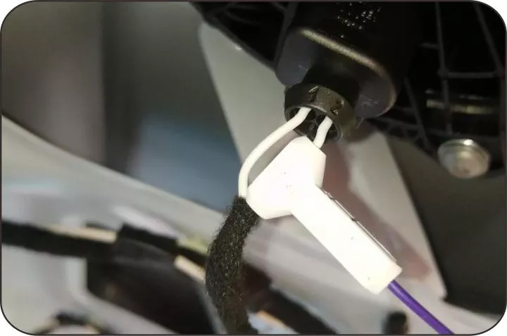 3. 安装尾门锁机三通转接线,连接尾门扣手开关负触发信号线(我司为紫色线)