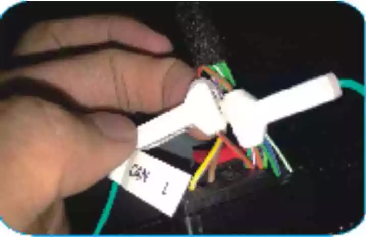 21. 用我司的CAN-H线和CAN-L线夹到空调座子上的橙绿色线和橙棕色线上
