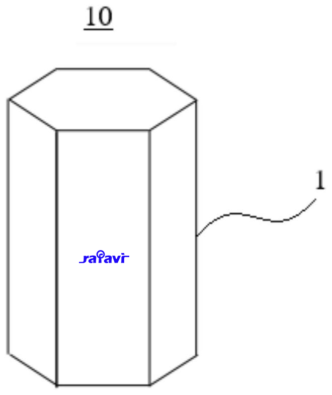 例如,在图1和图3的示例中,通过将壳体1的形状设置为正六棱柱形,此时壳体 1的横截面形状为正六边形,可以增加电池10的尺寸,从而可以增大极芯的容量,且可以增强电池10的结构强度,以使电池10能够承受一定载荷。由于正六棱柱的壳体1的内部具有较大的剩余空间,从而可以容纳更多的电解液,以延长极芯的使用寿命,进而可以延长电池10的使用寿命。