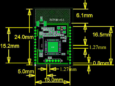 CC2540 低功耗蓝牙模块 是基于 TI 公司 CC2540 芯片研发的低功耗蓝牙射频模块,是 一款高性能物联网无线收发器,可广泛应用于各种场合的短距离物联网无线通信领域。具有 功耗低、体积小、传输距离远、抗干扰能力强等特点。