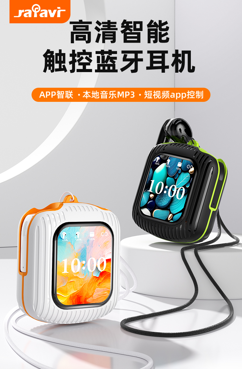 1. LCD全彩智能触控无线头戴式耳机app smartlink,本地音乐MP3,短视频app控制,音乐播放,来电接听等功能触手可及;